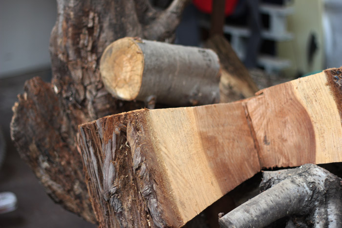 First, let me be clear, I’m not a woodcrafts person. I came to this material sideways. In school I sculpted, working primarily in ceramic materials. Luckily I was required to study many disciplines, and became keenly interested in materials. Years ago when an invasive tree was felled from our yard, I seized it as free studio material, then: scrap wood from construction sites, more fallen trees, wood from friends, now my studio is packed with more resources than I could ever purpose.